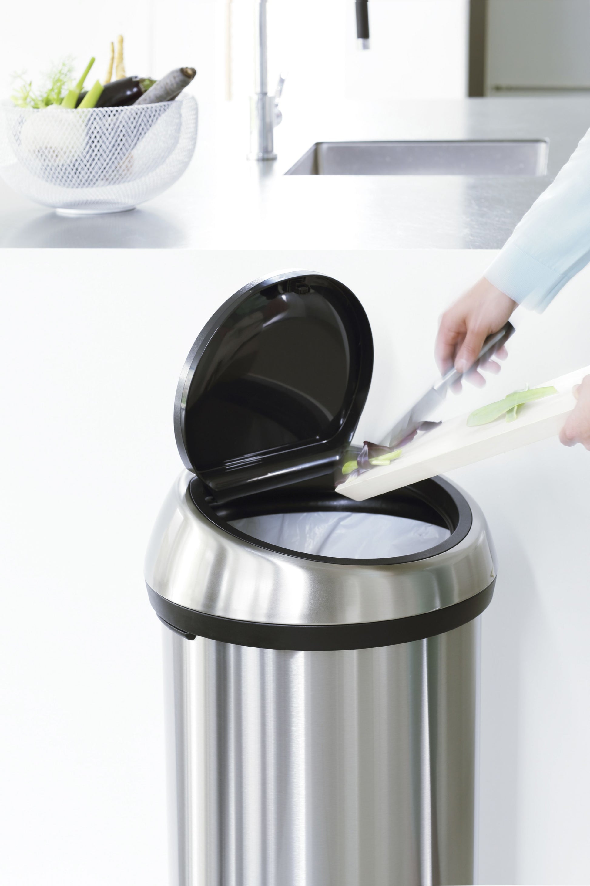 No time to waste? Our extra large Touch Bin® lets you store up to 60 litres of waste.