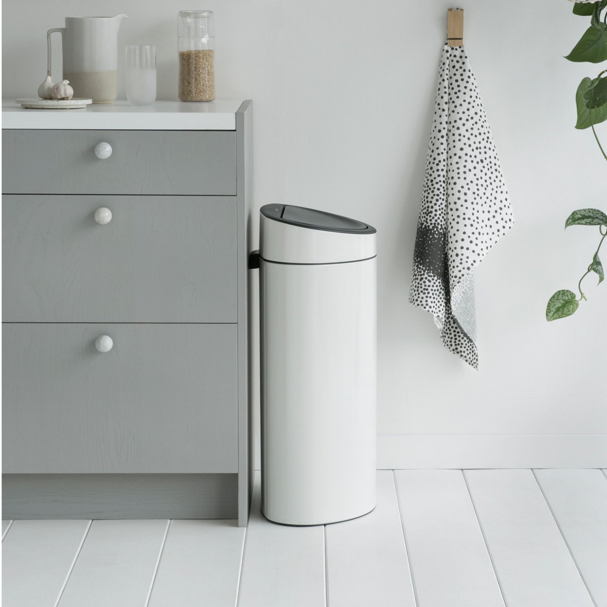 | Add a touch of design to your home with the Brabantia Touch Bin 40 litre. A great, yet space efficient, organising help that looks the part too. Just touch the lid and it opens smoothly. It also has a timeless design, is easy to clean, and it protects your floor thanks to the protection rim. This touch bin is ready for years of intensive, problem free use! |