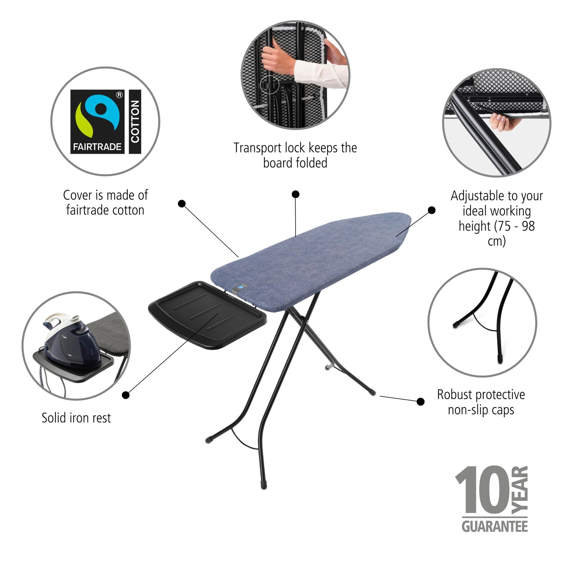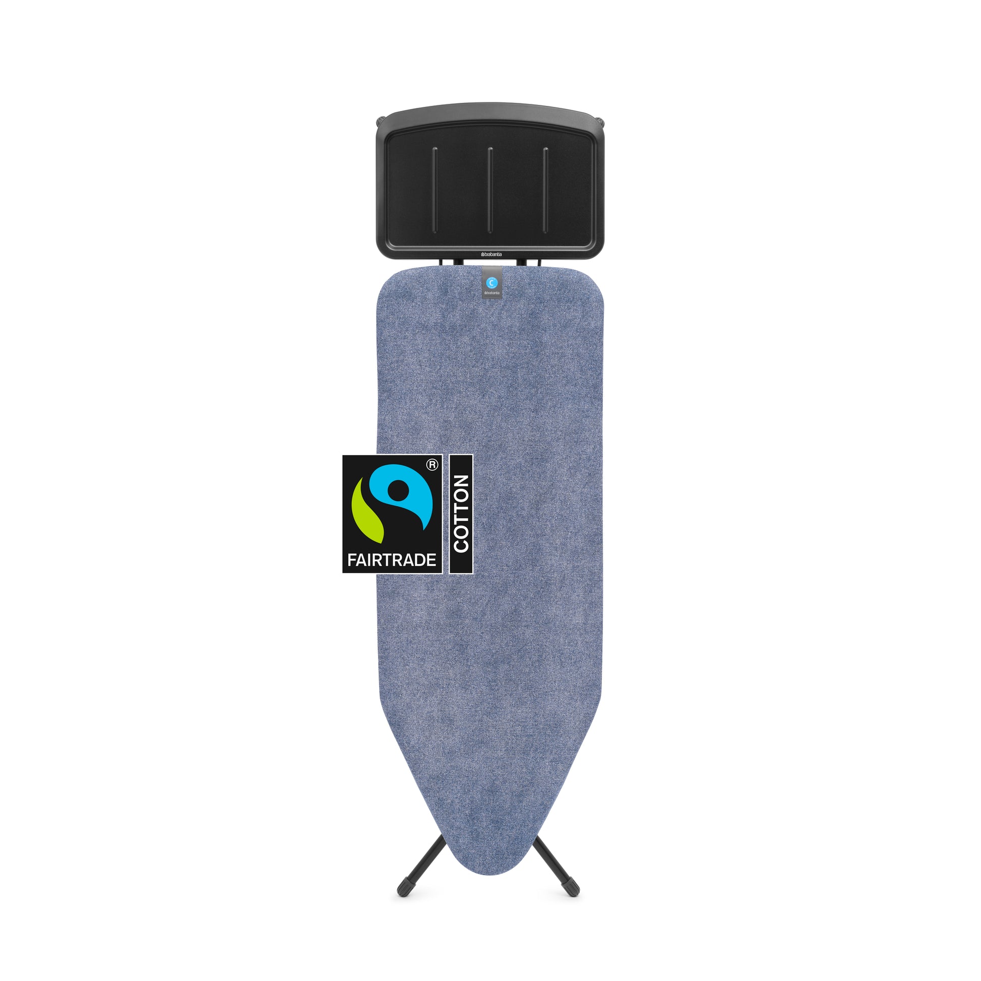 Big is beautiful. And easier for ironing! This plus size steam Brabantia ironing board C with steam unit holder gives you 124 x 45 cm of ironing space and saves you the hassle of moving your laundry around on the board. With a metal holder strong enough to hold your steam unit, a sturdy adjustable frame and renowned Brabantia quality, this XL board is a great addition to your life. And thanks to the cover made with 100% Fairtrade Cotton, it helps make the lives of farmers better too!
