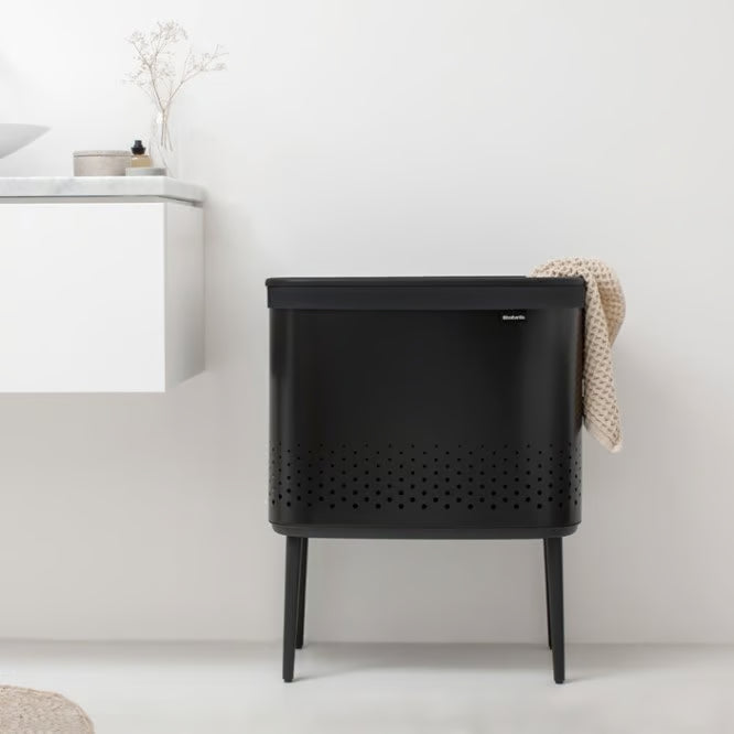 Brabantia makes laundry day a fashionable event, by introducing a 60L and 2x45L Bo Laundry Bin. Both bins have long legs! This makes all Bo bins easy to use, and a beautiful addition to your carefully styled home. Available in White and Matt Black, and made from durable corrosion resistant materials. Perfect for your bathroom.
