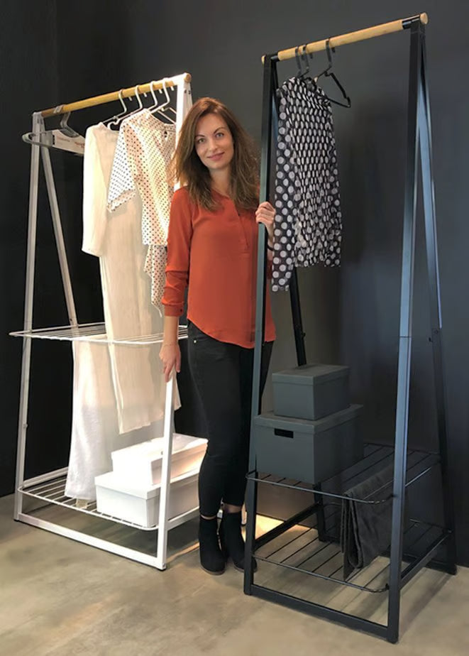Storage, airing and drying your clothes becomes decorative with this new sturdy clothing rack. Get your laundry out of the closet with our new collection of clothing racks. Linn: stylish and practical.
