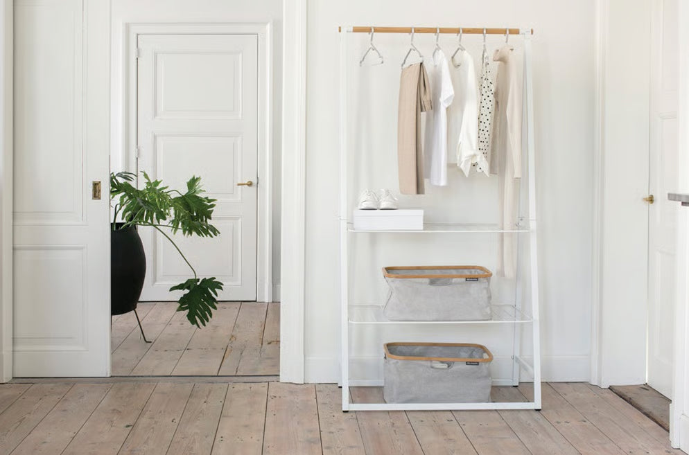 At Brabantia, you are at the right place. The Linn clothing racks are made of tough and sturdy materials. The sturdy bamboo clothing rod has space and can support up to 16 clothing hangers with clothes. The clothes racks also have adjustable non-slip feet. This also ensures your floor isn't damaged and the rack is always stable. What more would you like from a clothing rack?