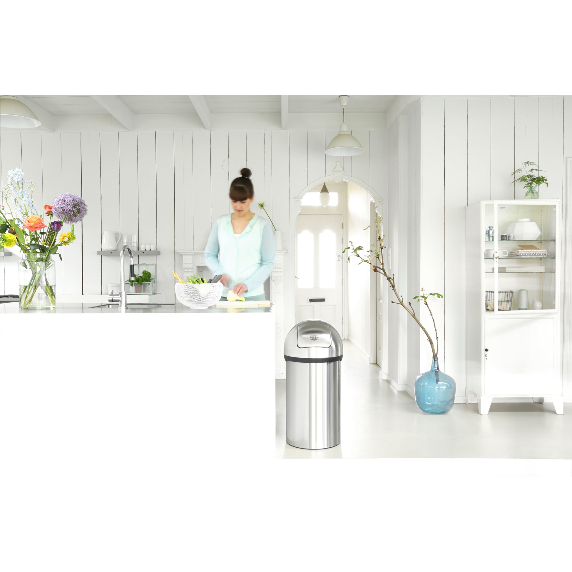 The Brabantia Push Bin 60 litre has a contemporary look with a hint of retro, pushing your kitchen interior right into the 21st century. The dampened lid keeps waste out of sight and hides a large opening, for easy waste disposal. A grand bin in more ways than one.