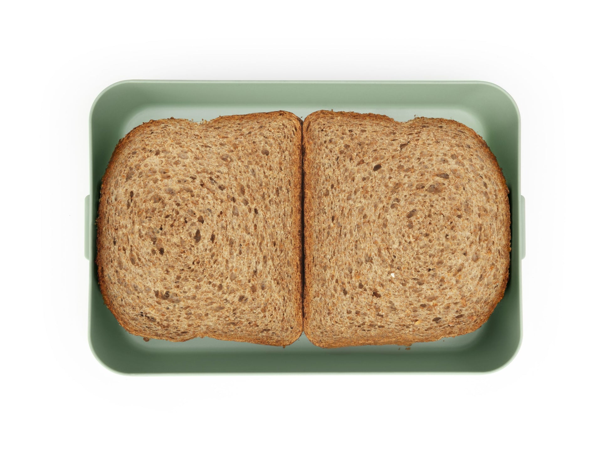 Bringing your lunch along is the sensible thing to do. And doing so in this Brabantia Make & Take Lunch Box Large makes it easy, stylish and sustainable. This beauty of a box has a lid with clips and room for up to 8 sandwiches. Or pack some bread rolls - your lunch, your choice. Enjoy!