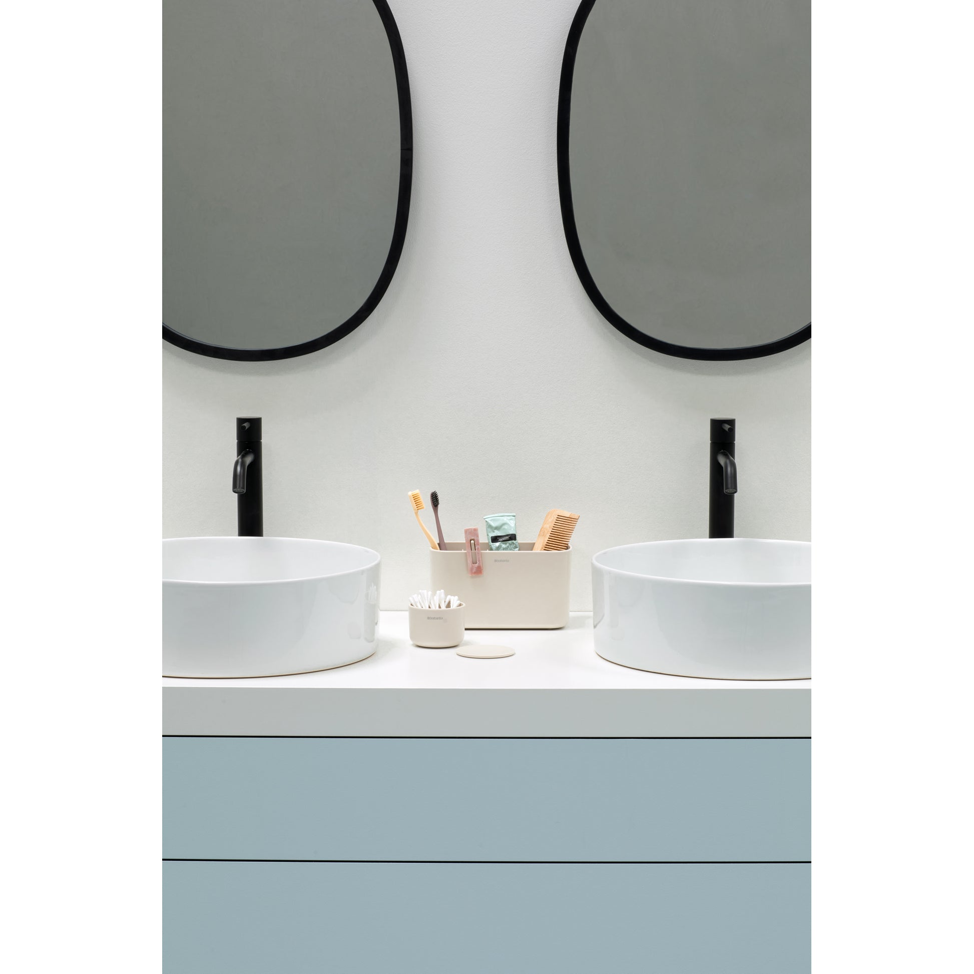 Whether it's for your hair, teeth or skin ... All your bathroom rituals are organised with this neat Brabantia ReNew Bathroom Caddy. A compact design, yet big enough to hold multiple (electrical) toothbrushes, tubes, brushes, and more. Made of corrosion-resistant materials, this caddy works wonders for your washbasin. Time- and space-saving!