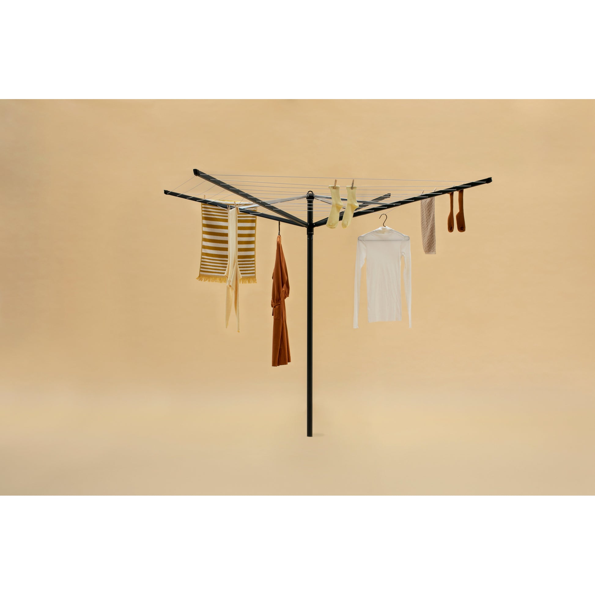 | Laundry days will take a turn for the better with this Brabantia Rotary Topspinner. Spins like a charm, even when fully loaded with wet washing. The durable UV-resistant washing lines with nonslip profile will keep your laundry in place. Done drying? Hang it from its sturdy loop. A true top-spinner and great for the planet too! |