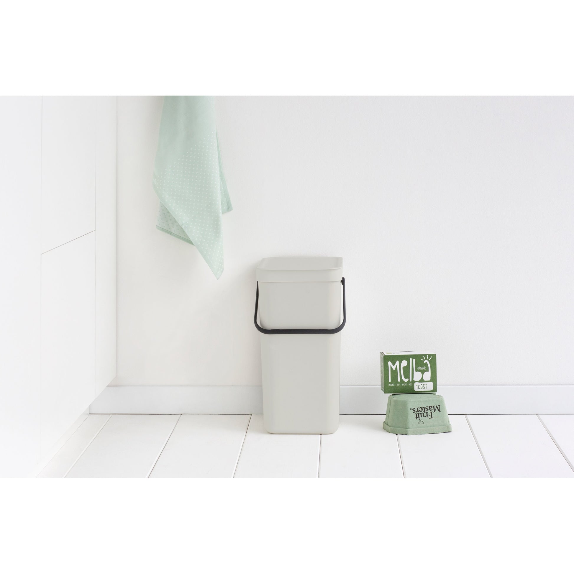 Collecting empty packaging, bottles, or cans separately? Make it easy on yourself, organise it all with this 16 litre Brabantia Sort & Go Recycle Bin. Put it in any corner, flat to the wall, or save even more floorspace and hang it from its included wall bracket. Time to empty it? Piece of cake, because of the large handle and bottom grip for easy carrying and emptying. Sort & go!
