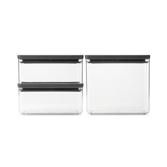 Tasty+ Stackable Canister, Set of 3 (2 x 1.6 litre and 1 x 3.5 litre) - Light Grey