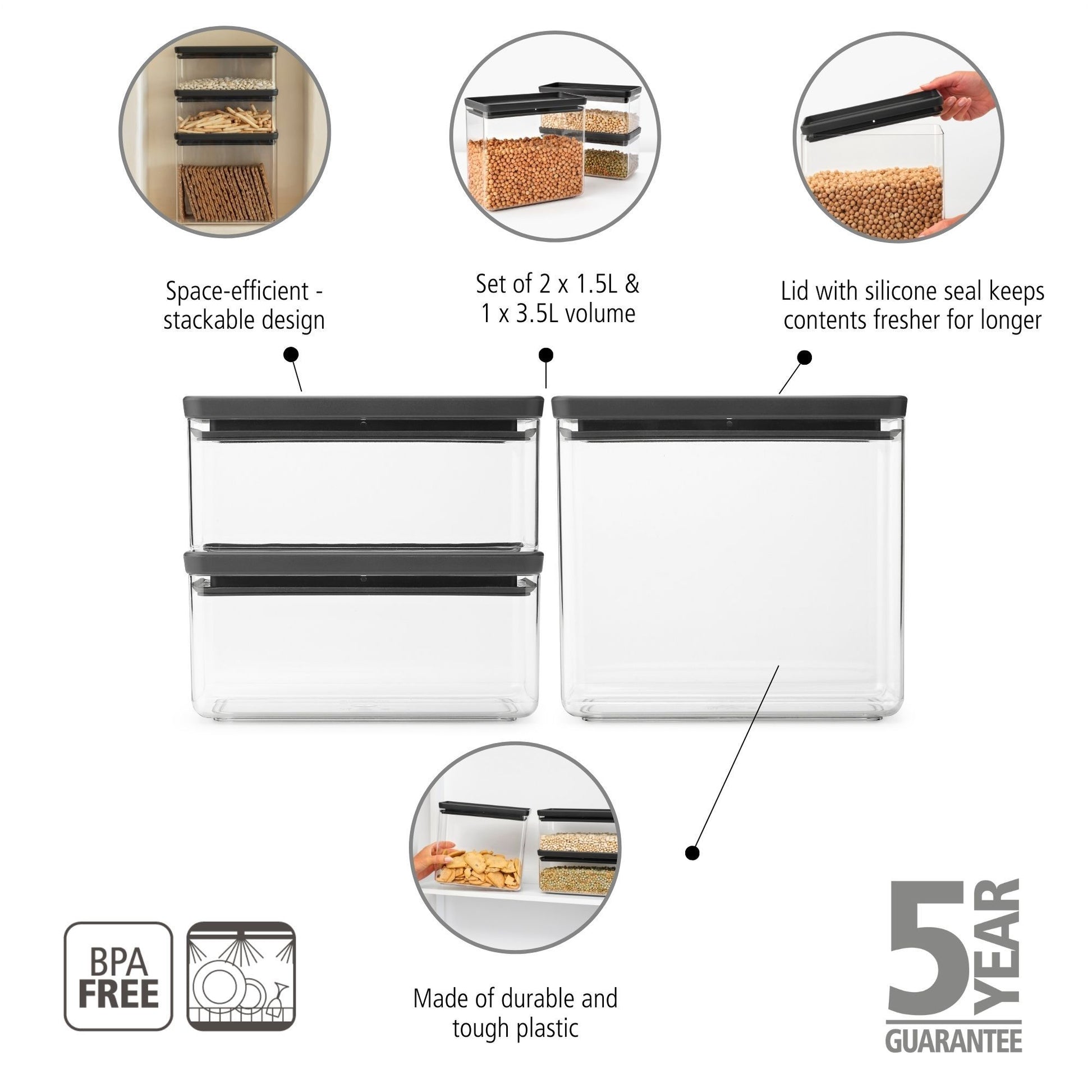 Tasty+ Stackable Canister, Set of 3 (2 x 1.5 litre and 1 x 3.5 litre) - Dark Grey