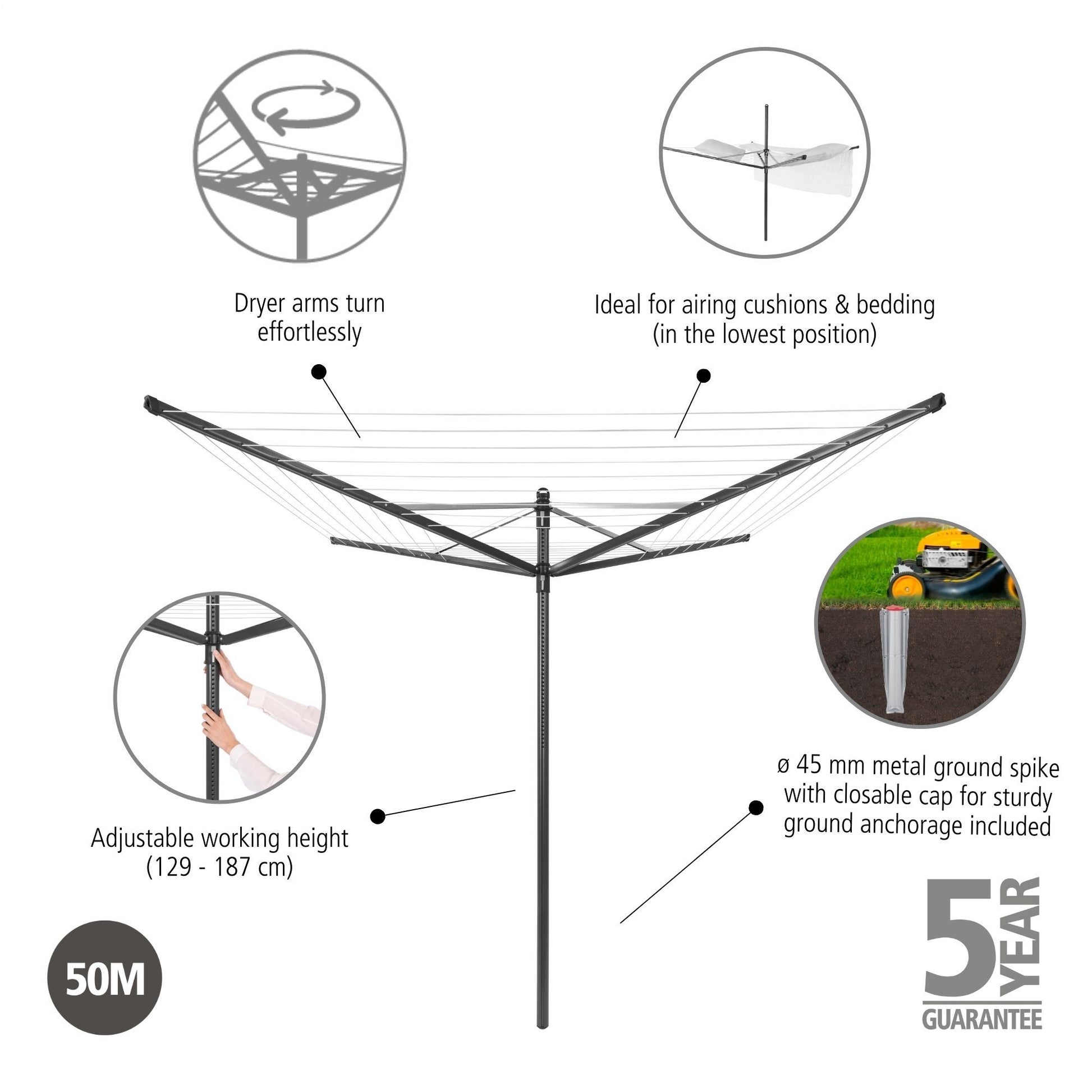 - No sagging - ‘Umbrella’ system for always taut drying lines.