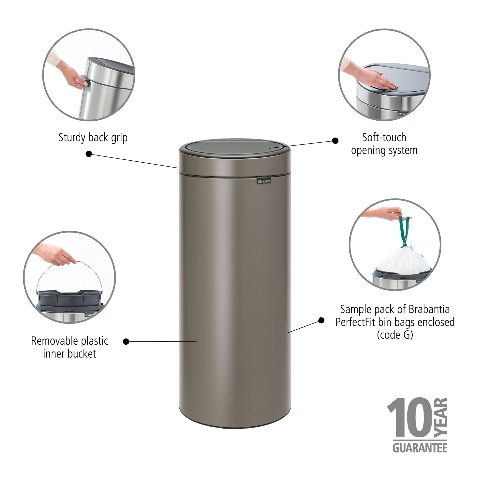 - Touch Bin New, 30L, Plastic Inner Bucket