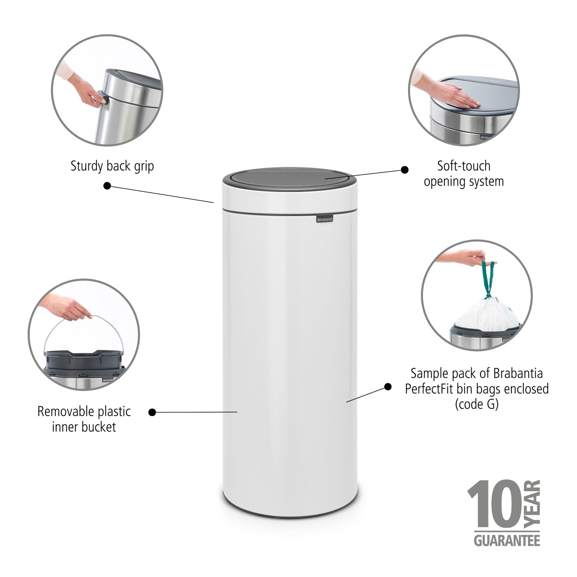 • Matching Brabantia bin liners available with tie-tape (size G) - perfect fit and no ugly over wrap