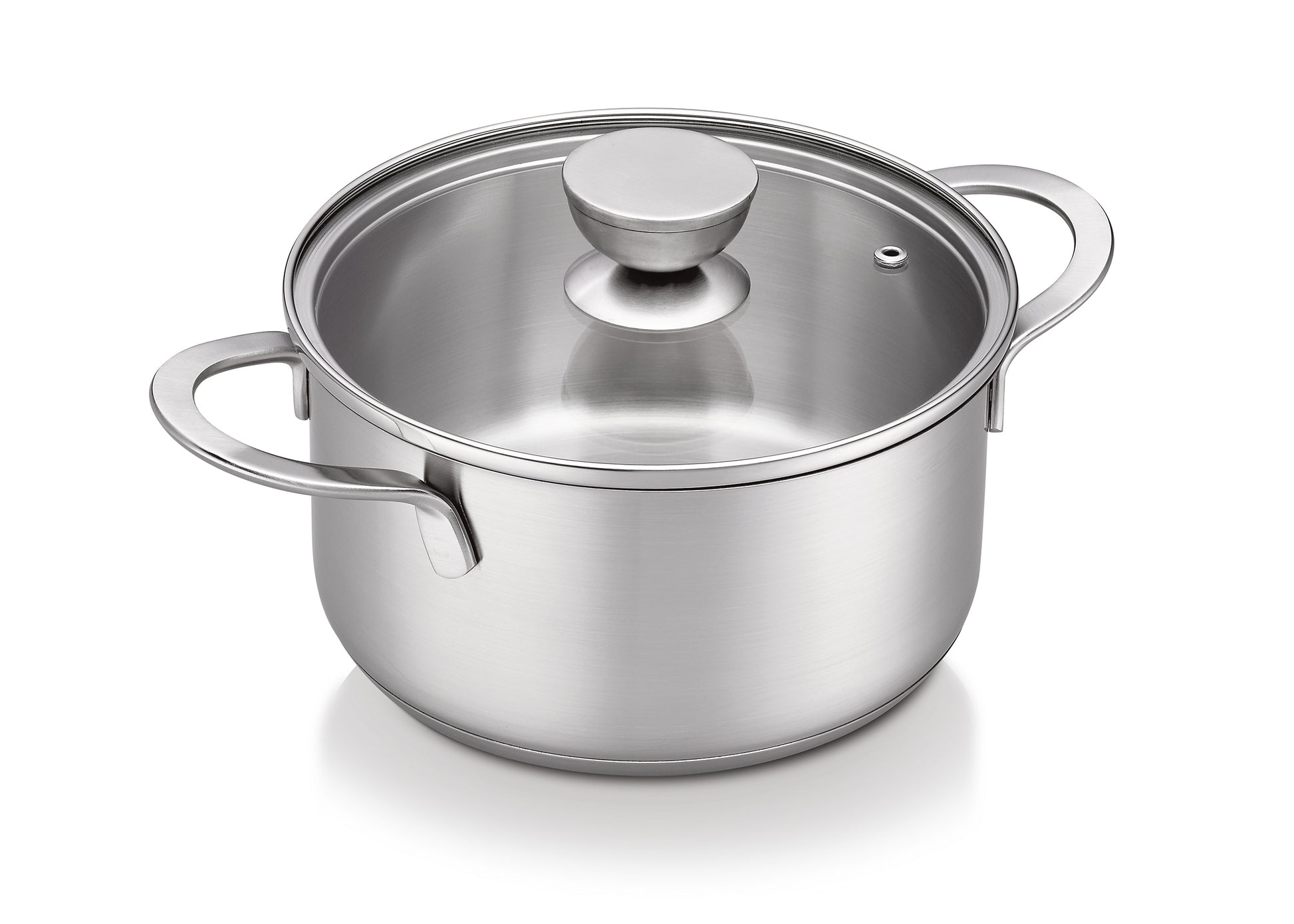 - Glass lid with stainless steel rim and air vent hole to prevent boiling over and allowing steam to escape.
