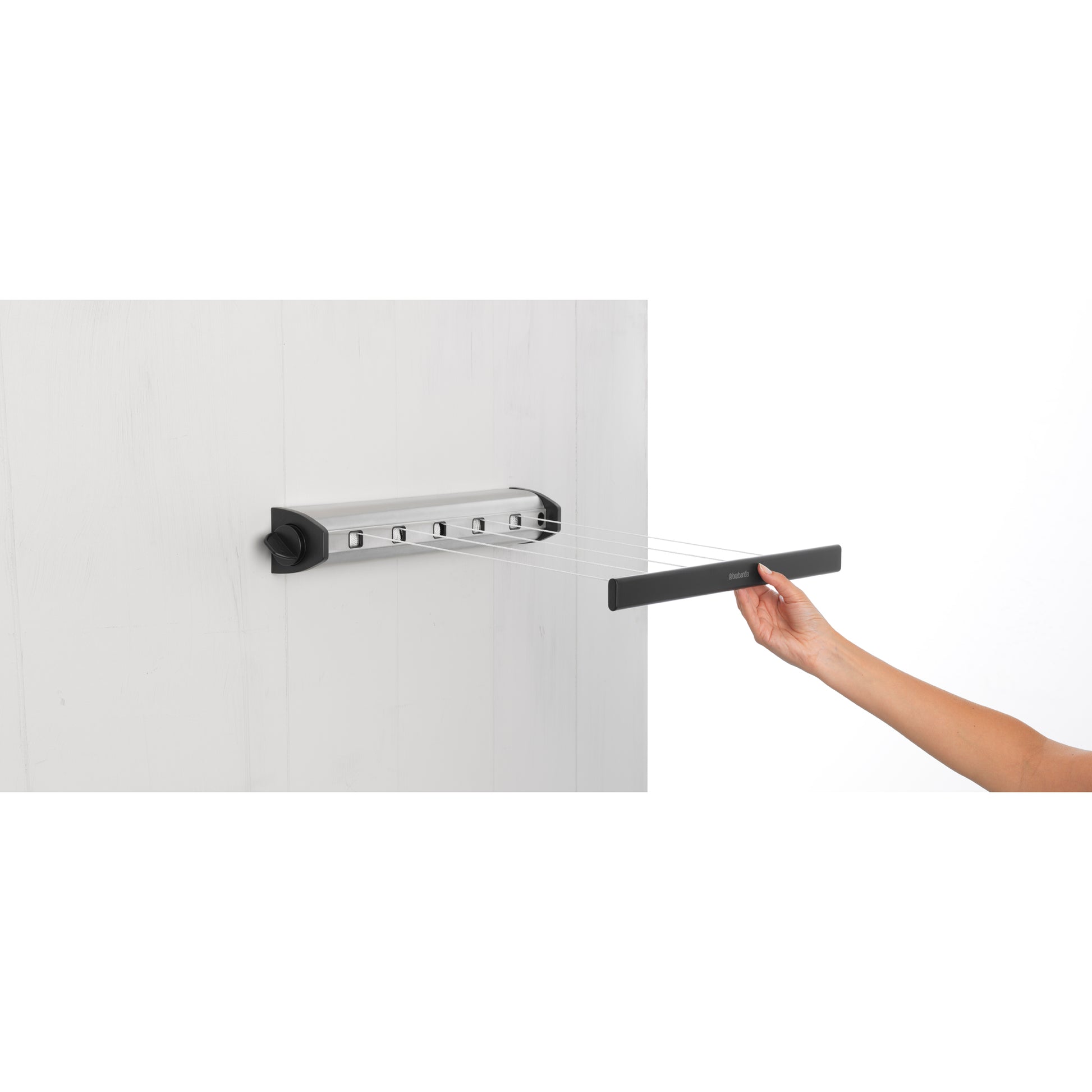 This handy retractable washing line offers 5 separate lines and rolls away neatly into a stylish wall-mounted unit. Using a locking spindal, there are five lines that extend up to 4.4 metres.